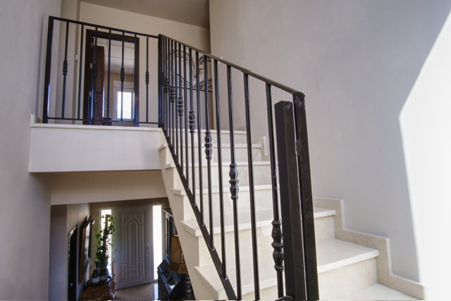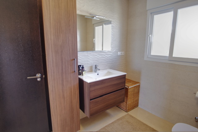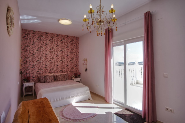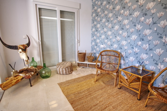 Inside, you’ll find a spacious living room with high ceilings, a cozy wood-burning fireplace, and a feature staircase with ornate ironwork. The large, fully equipped kitchen is ideal for entertaining. Upstairs are four elegant bedrooms with built-in wardrobes, one of which includes a walk-in closet. Two of the bedrooms open onto a balcony with stunning mountain views. The three bathrooms are stylishly presented, and independent hot/cold air conditioning is available on both floors.