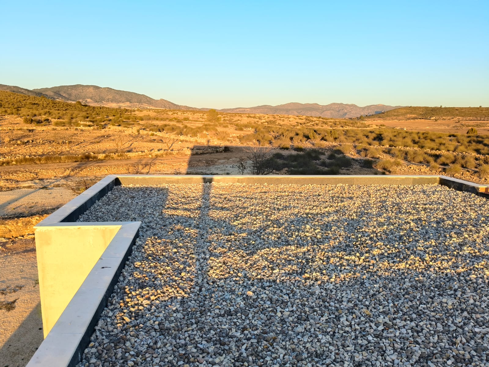 In the hills just above Pinoso, this modern new build villa is currently under construction on a plot of over 10,000 m². Completion is scheduled for December. The property combines contemporary design with a practical and sustainable layout, set in a peaceful location surrounded by nature and open views.